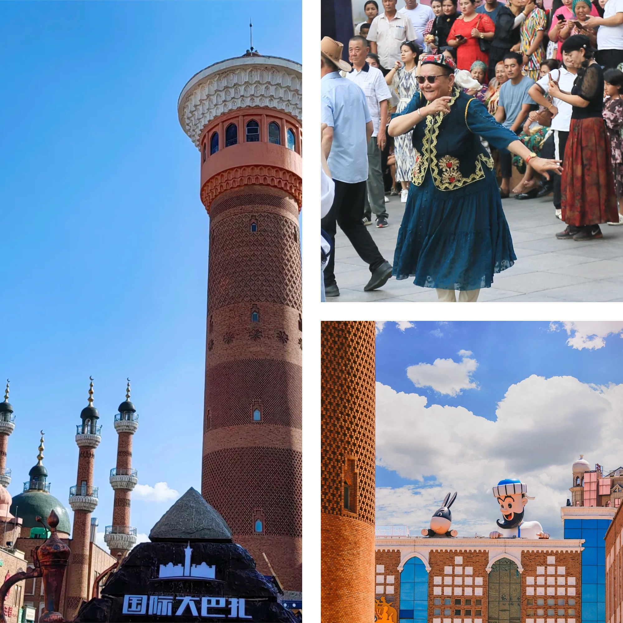 可以去逛逛新疆国际大巴扎,一个非常适合拍照和citywalk的地方,不必执着于带走什么,这里的精彩不在购物,下午的广场才是精髓,手鼓与弹拨尔是永恒的背景音,吟唱《木卡姆》的歌者嗓音苍凉,表演“达瓦孜”的少年身姿惊险。而当音乐达到高潮,素不相识的人们终被感染,自然而然加入那场旋转的圆圈舞中。