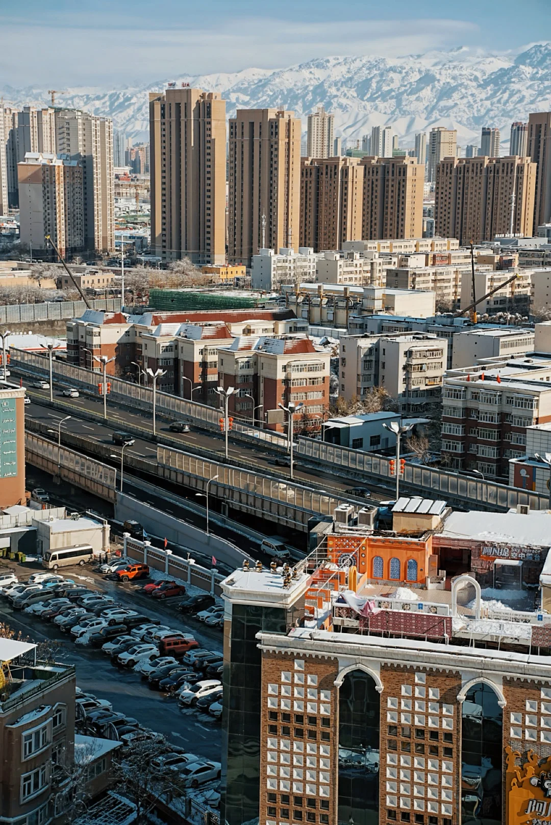 想看清这座城的轮廓,可以去观光塔四号楼五层。透过玻璃窗,乌鲁木齐的生机与周边壮丽风光尽收眼底,繁华而真实。