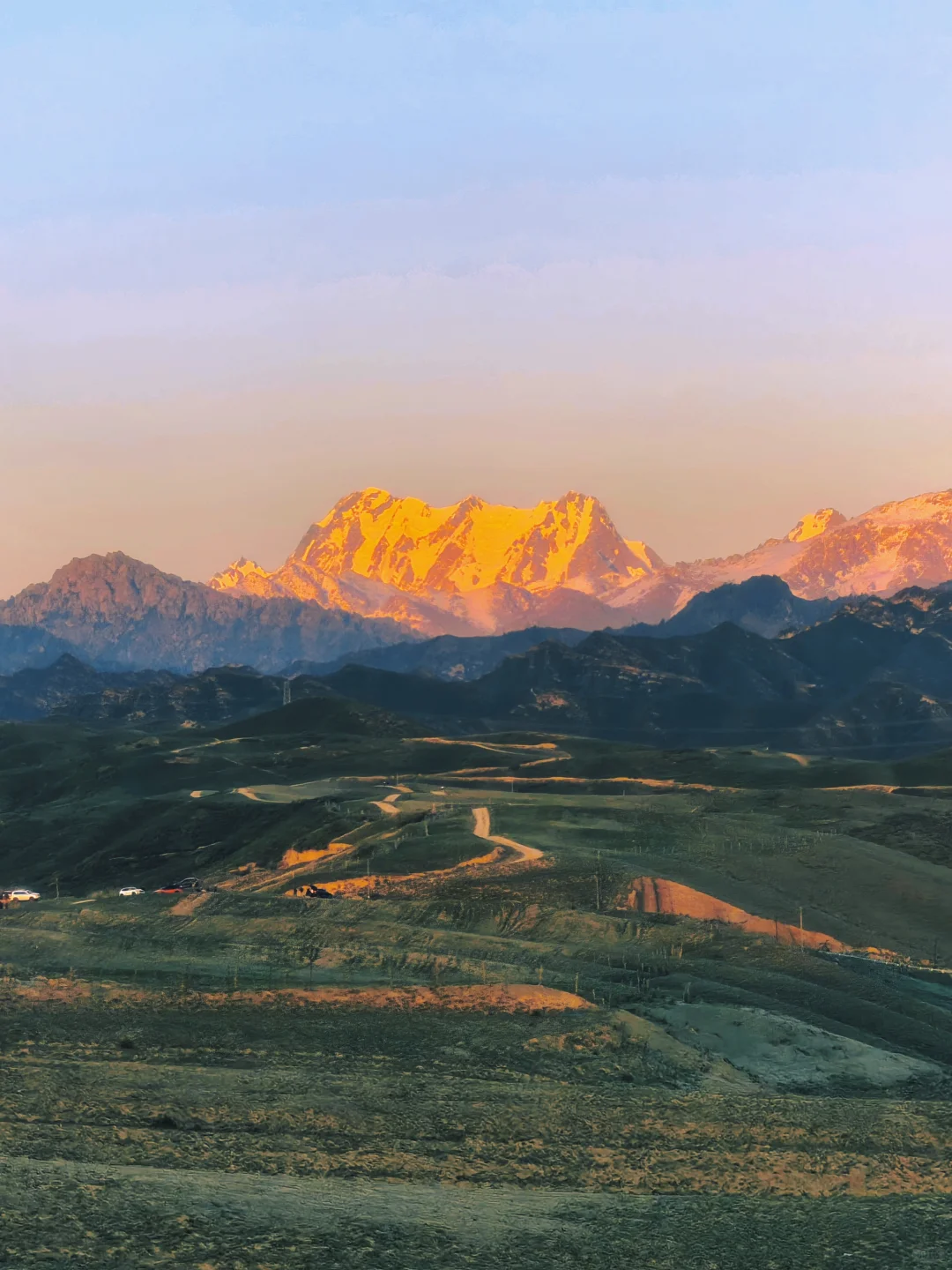 而真正的壮阔,藏在城郊三十分钟车程的金岭台。日暮时分,博格达峰披上金色的绸缎,如一位沉默的巨人。若你赶早前来,便能收获一场“日照金山”的洗礼,那是在城市怀抱里,最接近神性的时刻。