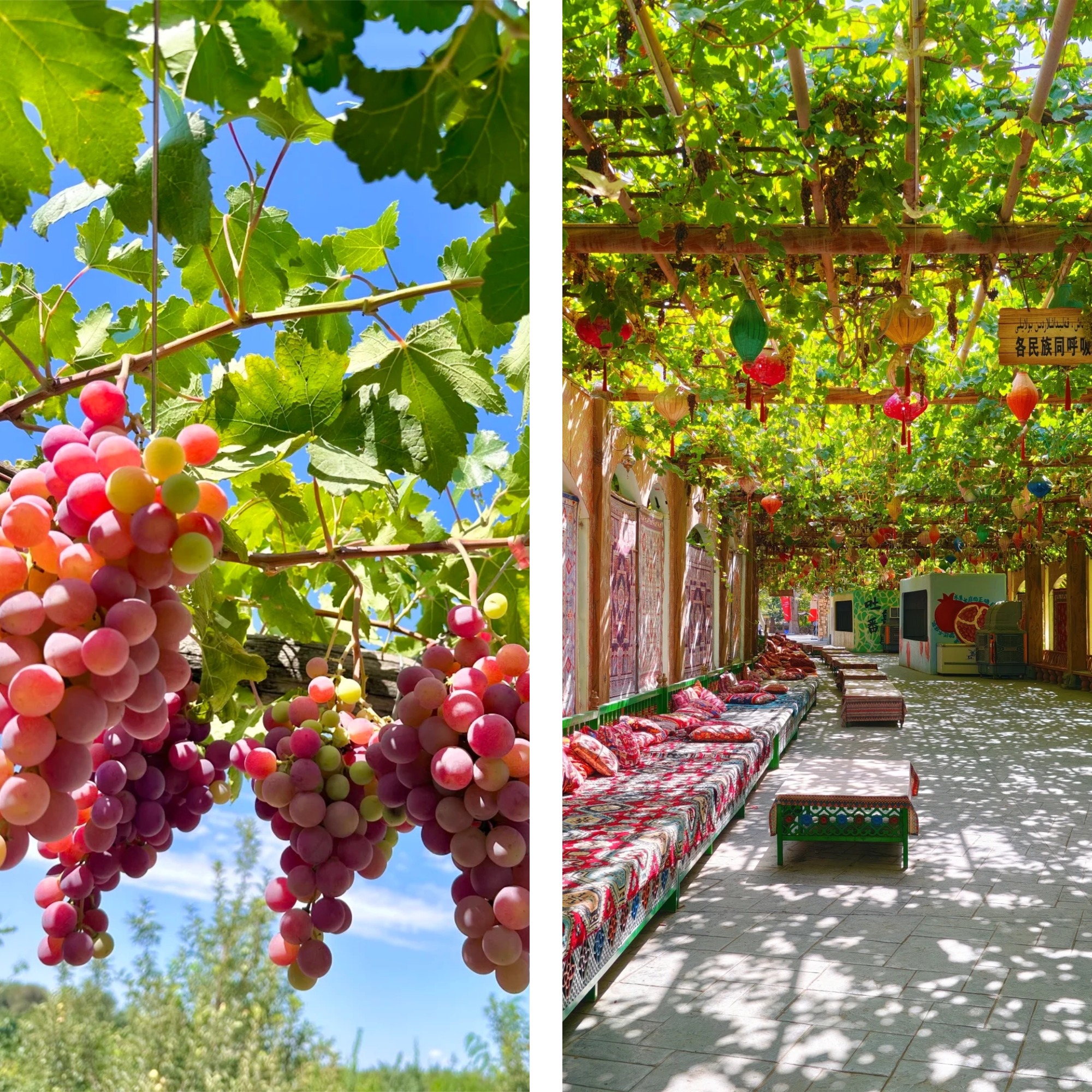 从乌鲁木齐站过来,差不多1h,不算很长,刚好够欣赏沿途的风光,“吐鲁番的葡萄熟了”的旋律在记忆里打转,还没下车,鼻尖仿佛已漫进蜜渍般的清香。