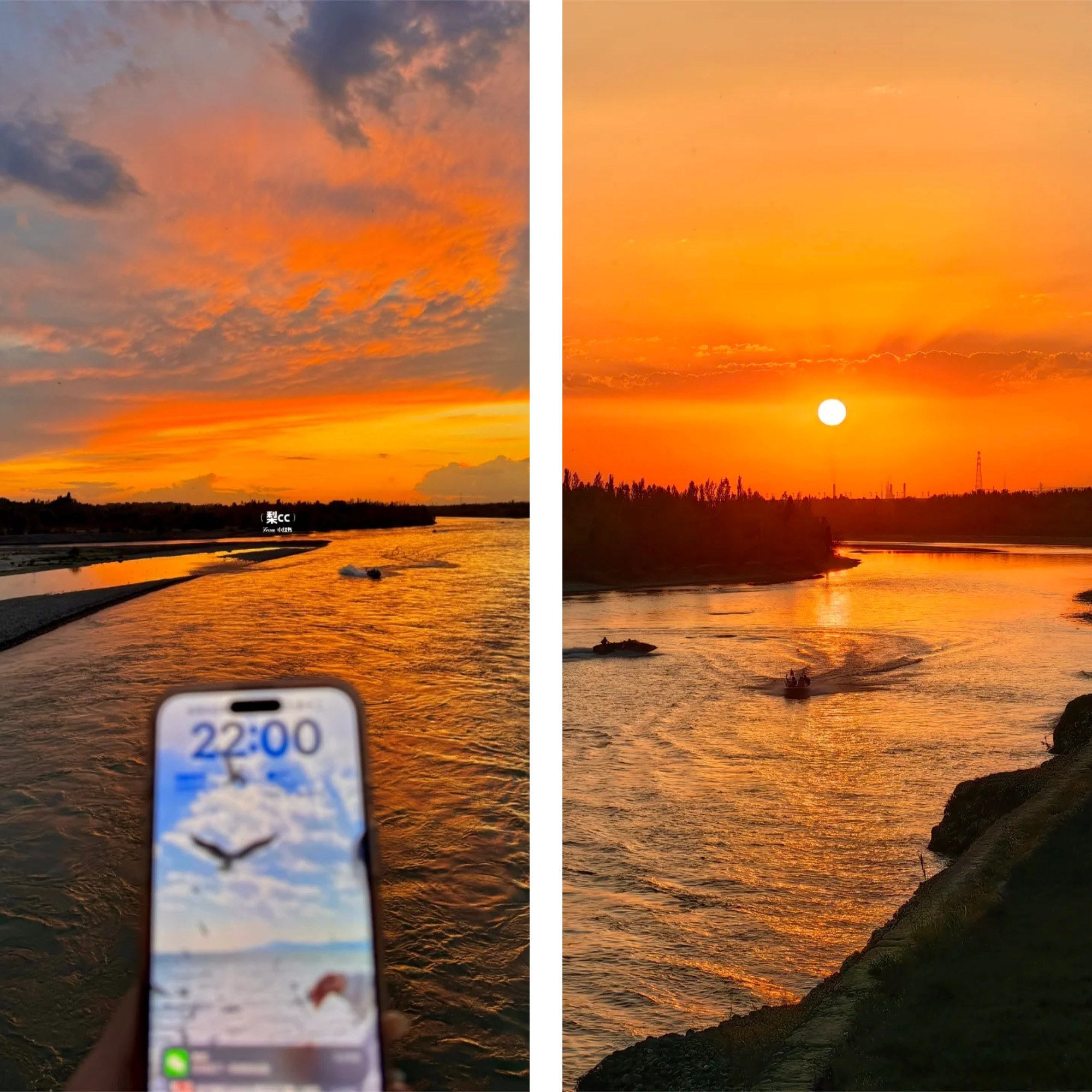 而傍晚,伊犁河边的风会抚平所有疲倦,若能恰好等到10点左右的日落,便能见证整片天空被晚霞点燃,河水鎏金,暮风沉醉——那是一场盛大而温柔的日常典礼。