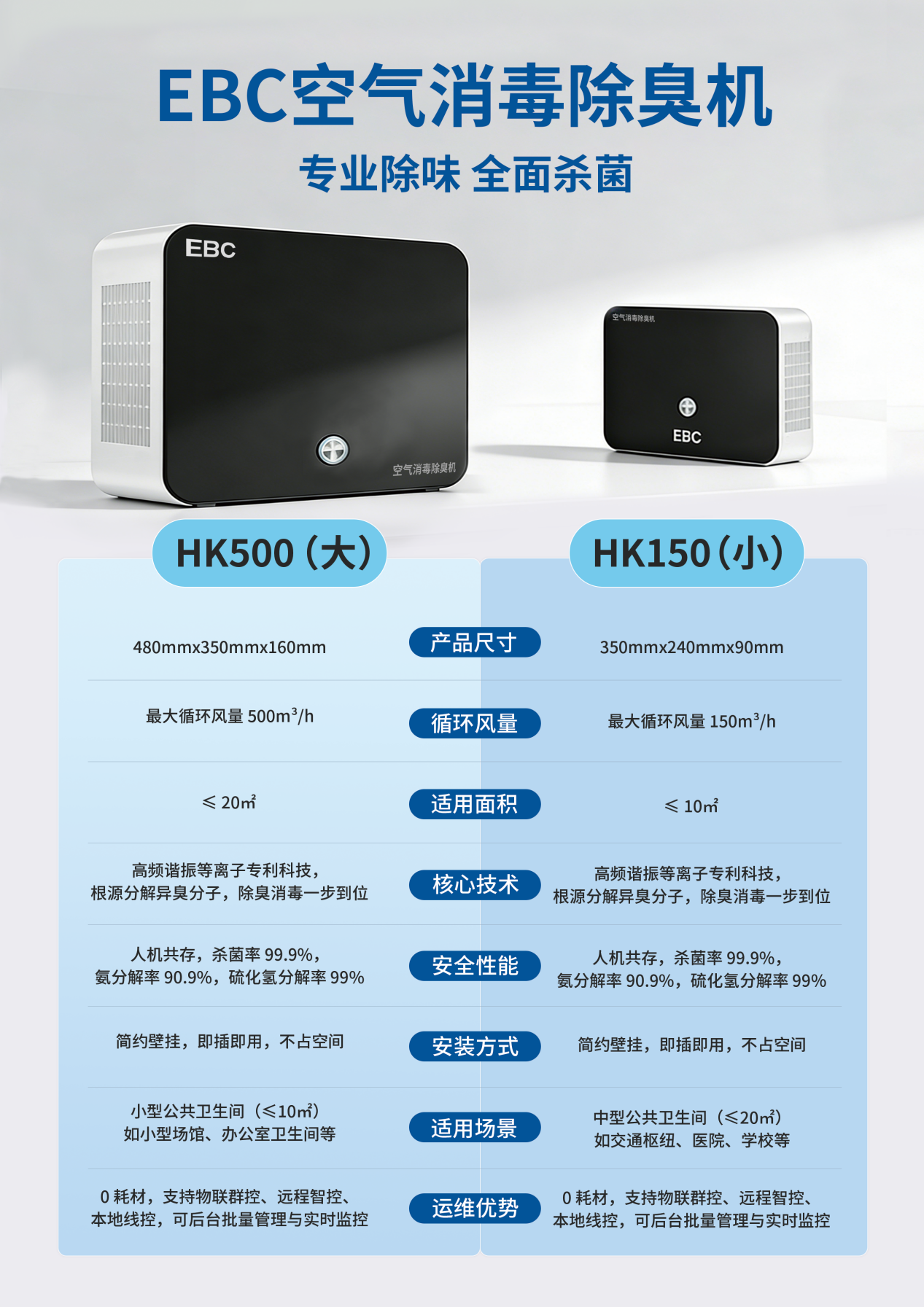 据相关负责人介绍,机场管理方对比验证多款主流方案后,选定EBC空气消毒除臭机开展试用;实测效果达到预期,随即正式布局多台设备,完成停车楼洗手间全域空气治理升级。