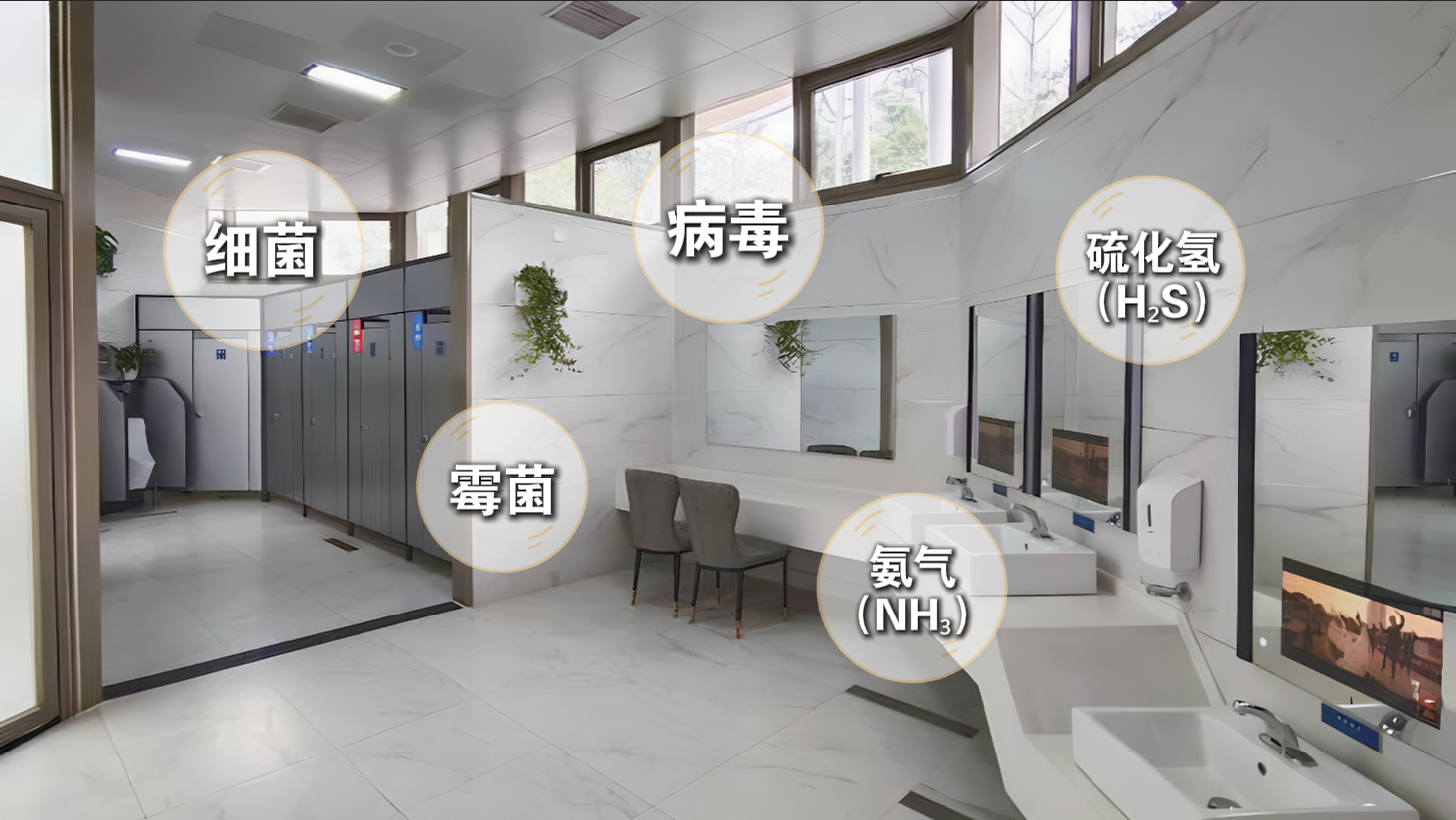 使用强度高:一栋写字楼少则几百人,多则数千人共用卫生间。高频次使用意味着异味物质的产生速度快、浓度高,对任何空气治理设备都提出了严峻挑战。