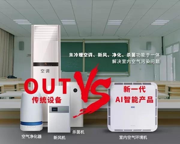 为了证实这一点,小编寻找了更多资料,最后得出以下结论: 学校一般采用的地面消毒液基本靠酸来达到去污杀菌作用的,具有极强的挥发性,长期接触消毒液,引起慢性鼻炎、慢性支气管炎、牙齿酸蚀症及皮肤损害,会影响到同学们的健康安全。 空气净化器对空气杂质有一定的净化作用,但没有完全净化的能力,因为它不能循环整套居室如两室一厅三个空间的空气,只能循环一个空间的空气进行净化。 空气净化器只能使局部空气进行流动,所以只能局部净化。因此,空气中0.3微米及以上的颗粒物(如PM2.5)和装修污染物(如甲醛)等空气杂质不能彻底清除。 空气净化器只能进行室内循环,没有室外新鲜空气的及时补充,导致教室内空气浑浊不流通,二氧化碳增多含氧量减少。长期将不利于孩子们的学习,并且净化器还容易滋生细菌。 那么在空气净化器可净化的范围内,空气杂质是否可以解决呢?空气净化器可以解决空气中0.3微米及以上的颗粒物,但不能解决空气中的污染物。 直接原因是大多数空气净化器的净化速度小于污染源的挥发速度,最终没有办法更有效的解决室内空气污染问题。 告别传统空气净化器,集冷暖空调、新风、净化、杀菌功能于一体的新一代EBC英宝纯教室空气环境机应运而生。 EBC英宝纯教室空气环境机通过智能管控中心感知教室内温湿度、含氧量、洁净度,智能调动系统功能模块联动运行,全面改善室内空气质量环境,始终保持室内恒温、恒湿、恒氧、恒净! EBC教室空气环境机的室内新风功能和空气净化功能同时进行,实现内外空气的双循环。室内新风热交换率高达80%,大幅度缩小了制冷(热)时室外新风与室内的温差,节省了能耗;同时通过室温控制功能深度调节新风的温、湿度,能够极大改善新风系统和空调单独安装时引发的冷热不均、湿度过剩等现象。此外,空气环境机的杀菌功能对病毒、细菌杀灭率超过99%,能最大化避免呼吸性传染病在室内传播。 英维克健康环境致力于基于校园的要求和期望提供创新的教室空气环境机,设计和开发高效的教室空气环境机,帮助学校满足学生的健康成长,最大限度地提高空气净化能力,推动“健康校园,健康空气”的发展。众多学校及学生受益于我们的教室空气环境净化技术。 注:部分图片来源网络。
