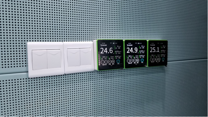 机房存放着整个党校基地的数据管控设备,对通风、温度、湿度都有极高的要求,需要及时的空气质量反馈。作为EBC英宝纯的明星产品,它集精密温控、调温新风、空气消毒、空气净化、空气检测、智能控湿于一体。精密温控至0.1℃,将相对湿度保持在40-60%的区间,提供恒温、恒湿的运行环境;开启新风模式,保持良好的通风,设备及时散热;实时监测并反馈温度、湿度、甲醛、TVOC、PM2.5、CO2各项数据。