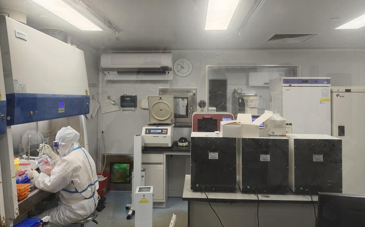 EBC空气环境机具有精密温控、调温新风、空气消毒、空气净化、空气检测、智能控湿等功能,全面保障核酸检测室的空气安全。目前运行状态良好,温度恒定在20℃,相对湿度<65%,为核酸检测室提供了温湿适宜的环境,有效抑制细菌的繁殖、增长;空气环境机通过了国家第二类消毒产品备案,对H1N1甲型流感病毒灭杀率、肠道病毒71型杀灭率、脊髓灰质炎病毒杀灭率都>99.9%,高效杀灭多种细菌病毒,为医务人员提供安全洁净的工作环境。