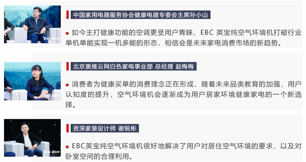 用减法思维做加法,对行业而言EBC英宝纯空气环境机的发布并不是简单的化零为整,合N为一!这是空气环境行业一个全新的开始。打破行业惯性思维,EBC英宝纯巧妙的抓住了用户的痛点,利用专业优势打造全新品类,推动行业进入多功能单机新时代。这一全新品类的问世也为疲软的空调行业带来了新的思路,为行业发展创造新的契机。对提升居民生活品质,打造幸福生活具有非凡意义。