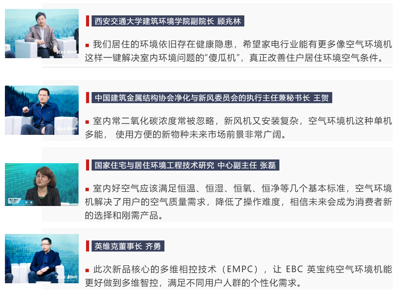 打破传统思维,用技术迭代产品,才能让行业迎来“破局”!英维克董事长齐勇表示,我们追溯科技本源,以打造“舒适+安全”的人居空气环境为核心,创立了EBC英宝纯这个品牌。