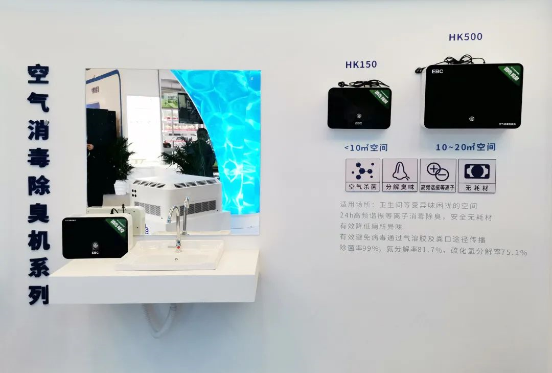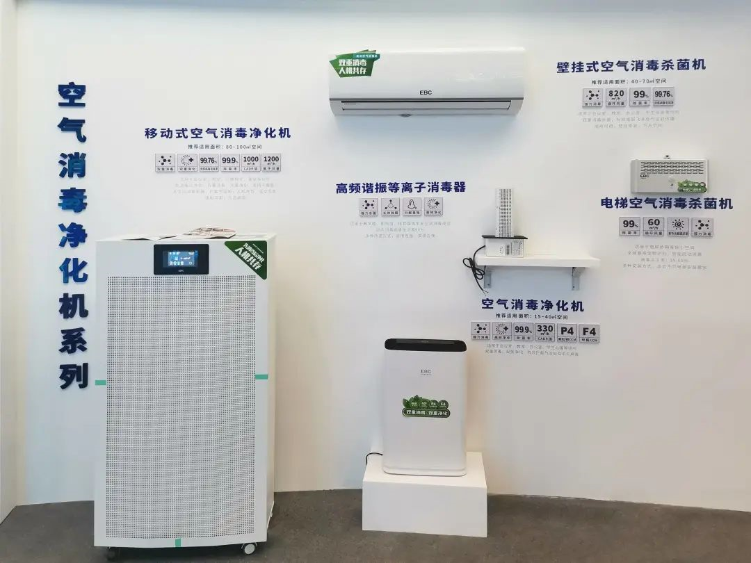 本次展会中,EBC英宝纯展示出“空气环境机”、“空气消毒净化机”、空气消毒除臭机“三个系列的产品。