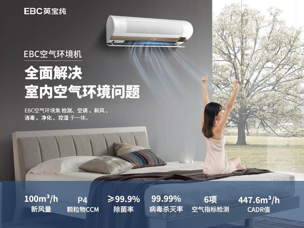 EBC英宝纯关注人居呼吸健康,是“空气安全健康”的倡导者,独创品类“空气环境机”创造性地用一机解决了室内空气环境问题,在呼吸健康领域无疑是质地飞跃,也满足了人们对室内空气环境安全健康的迫切需求。它能够将室外新风经过消毒-净化-调温三重处理后再引入室内,去除PM2.5、粉尘等颗粒物,同时排出甲醛、TVOC、苯化物等气态污染物,全方位无死角地保护民众的呼吸安全健康。