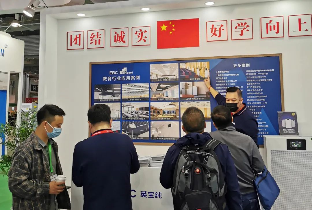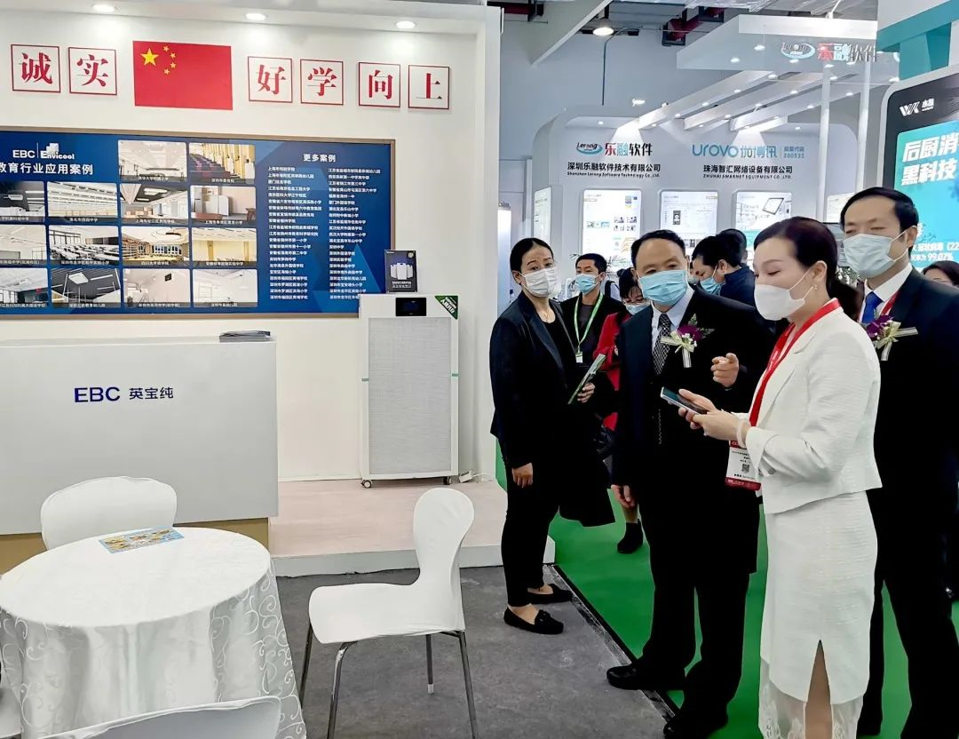 11.10 中国·上海 2020年11月10日,中国教育后勤展览会于上海世博展览馆盛大开幕。 中国教育后勤展览会以创新、协调、绿色、开放共享为发展理念,旨在推动教育后勤服务企业与全国各地区学校的共同发展。 本次博览会中,深圳市英维克健康环境科技有限公司(以下简称“英维克健康环境”)携健康校园全场景空气环境综合解决方案强势亮相,获得了行业专家及教育从业者的一致好评。 英维克健康环境通过EBC英宝纯“空气环境机”、“空气消毒净化机”、“空气消毒除臭机”等三个系列的产品,致力于为校园打造健康、舒适、安全的空气环境。 领导参观 展会中,教育行业各领导莅临英维克展馆参观指导。在了解校园全场景空气环境综合解决方案后,各领导对英维克的优质产品及创新型解决方案表示了认可,并提出宝贵意见。 嘉宾热议 探讨产品优势与服务 本次英维克健康环境展示的产品及解决方案引发了展会现场嘉宾的关注和热议,参观嘉宾与工作人员展开友好讨论。 教育从业者提出,针对不同校园情况,英维克健康环境如何实现校园空气环境控制系统的建设? 英维克健康环境推出的校园空气环境综合解决方案、校园消毒防疫综合解决方案和校园消毒除臭一体化解决方案可以解决校园内不同的空气环境问题,此外还有教学楼等中央空调消毒改造方案,可以满足不同学校的需求。 行业专家则对创新型产品感到好奇:目前市场上产品同质化严重,英维克健康环境是如何突破行业瓶颈,打开新市场的呢? 英维克有着行业领先的散热及环境控制技术。在此基础上我们研发了国内独创的多维相控技术,通过高精度传感器对环境因素的实时监测,生成动态数据模型,智能控制中心会采用最佳解决方案来调用各功能模块,并调节各模块的运行效率。 我们的产品突破目前市场上单机单功能的瓶颈,实现了一机解决所有空气环境问题,真正做到了智能、主动、高效地管理室内空气环境。 各嘉宾纷纷对这种创新型解决方案和以用户为中心的产品设计表示认可。 参展产品 一览全场景解决方案 本次展会中,英维克健康环境展示了EBC英宝纯“空气环境机”、“空气消毒净化机”、“空气消毒除臭机”等三个系列的产品,实现对校园空气环境的全面覆盖。 空气环境机系列 产品:吸顶式空气环境机、分布式空气环境机、房间空气环境机等 特点:该系列产品运用国内独创的多维相控技术,实现对空气环境的实时监测和智能调控,一机实现空气监测、温控、消毒、净化、杀菌、新风等多项功能。 应用:该系列产品采用AI主动式管理,智能控制中心根据最新环境数据生成的数据模型,高效地完成温度、湿度、新风量的调节及甲醛、PM2.5、TVOC、二氧化碳等空气污染物的处理。 其中吸顶式空气环境机的最大新风量为1000m³/h,可满足室内50人的新风量需求。该系列产品广泛应用于教室、宿舍、食堂、图书馆等多个不同面积的校园场景。 空气消毒净化机系列 产品:移动式消毒净化机、壁挂式消毒净化机、电梯消毒杀菌机、高频谐振等离子消毒器等 特点:该系列产品采用先消毒后净化以及多重消毒净化的创新工艺,有效避免滤网藏病毒,消毒更安全,对多种病毒的杀灭率均超过99%。 应用:全系列产品覆盖15~120㎡等不同面积,全面解决电梯、教室、宿舍、食堂、图书馆等室内空间的消毒问题。 该系列产品采用全封闭紫外光触媒,人机共存,安全可靠,可有效滤除飞沫及气溶胶,实时保障课堂上的空气安全,打造安全健康的室内空气环境,给全校师生有力的安全防护。 空气消毒除臭机系列 产品:空气消毒除臭机 特点:该系列产品采用等离子消毒的核心技术,将空气中的细菌、病毒及产生异味的分子分解,提供真正安全清新的空气。 应用:该系列产品能有效分解空气中的病菌及异味分子,对异味主要来源(氨)的分解率达到81.7%,对于多种细菌杀灭率达99%以上。广泛应用于公共洗手间及有异味空间,带来安全舒适的清新空气。 EBC空气消毒除臭机是专为公共厕所设计的消杀除臭一体化产品。该系列产品既能实现消杀,减少公共厕所的气溶胶传播;又能改善公共厕所的气味环境,对学校厕所空气安全和舒适性上有很大的提升。无耗材的设计无需后期费用支出,减少人力成本、改善学校公厕环境。 携手共进 共创健康校园环境 本次教育后勤展览会加强了行业专家、教育从业者和各渠道商对我们全面、创新的校园空气环境解决方案的了解与认可,也加深了对我们校企合作、建设新时代背景下健康校园的战略部署的期待。 英维克健康环境在本次展会中听到许多行业利好的声音,未来我们将继续深耕空气环境控制领域,持续精进,以用户需求为中心,以市场为导向,快速推出优质产品,带给所有师生最舒适的健康校园。
