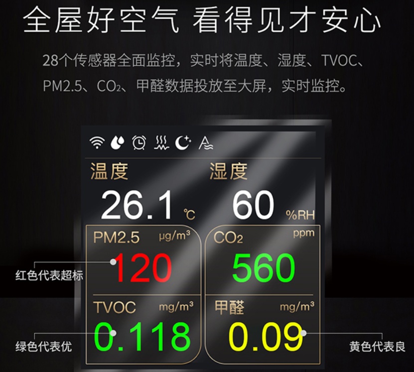 空气环境机是一个比较优质的解决方案。其实对于室内甲醛问题,我们需要直观易懂数据化动态的观测才能安心。首先,我们知道它存在在我们生活的空间是一个什么样的剂量,我们才能有的放矢地做出调整和处理,在实施处理的过程中,我们需要实时观测我们处理方式是否有效,对于处理结果我们可以知晓。