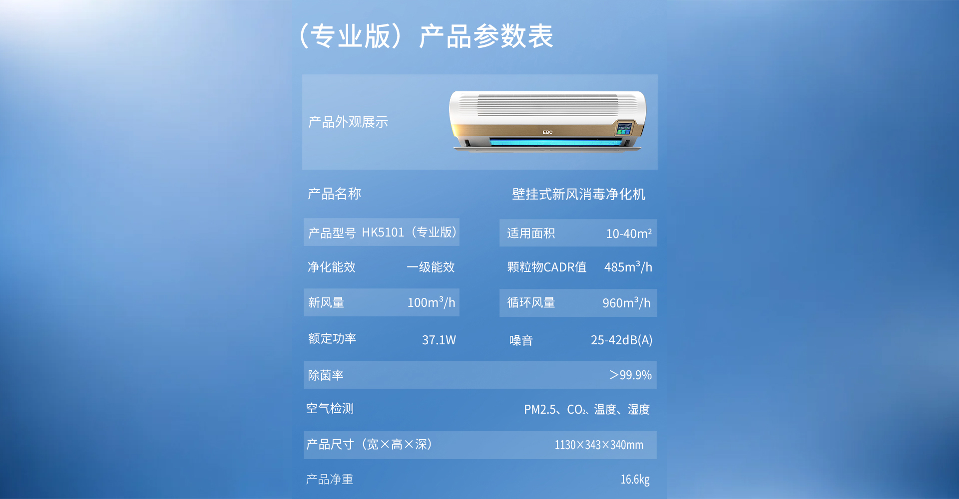EBC壁挂式空气消毒净化机 | 医用级消毒与高效净化一体机,安全空气,一步到位。