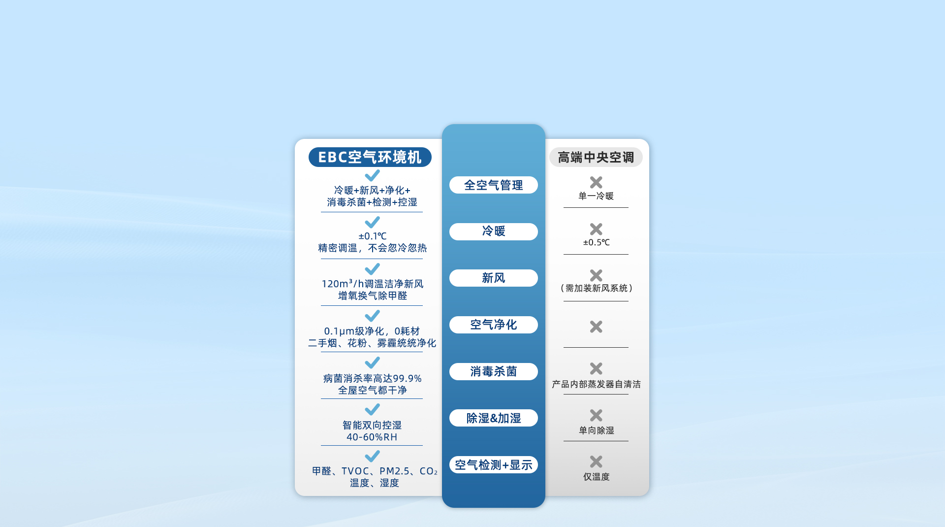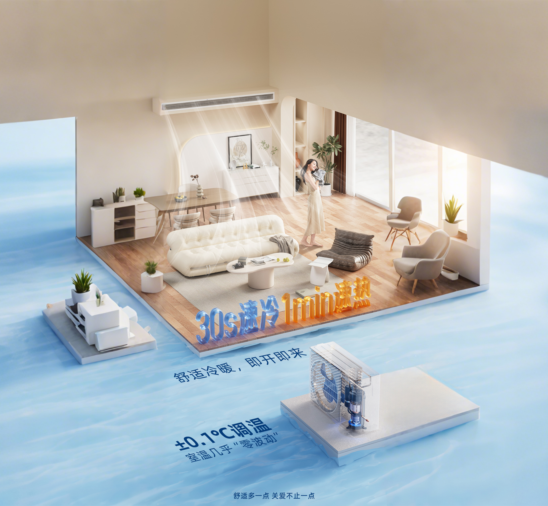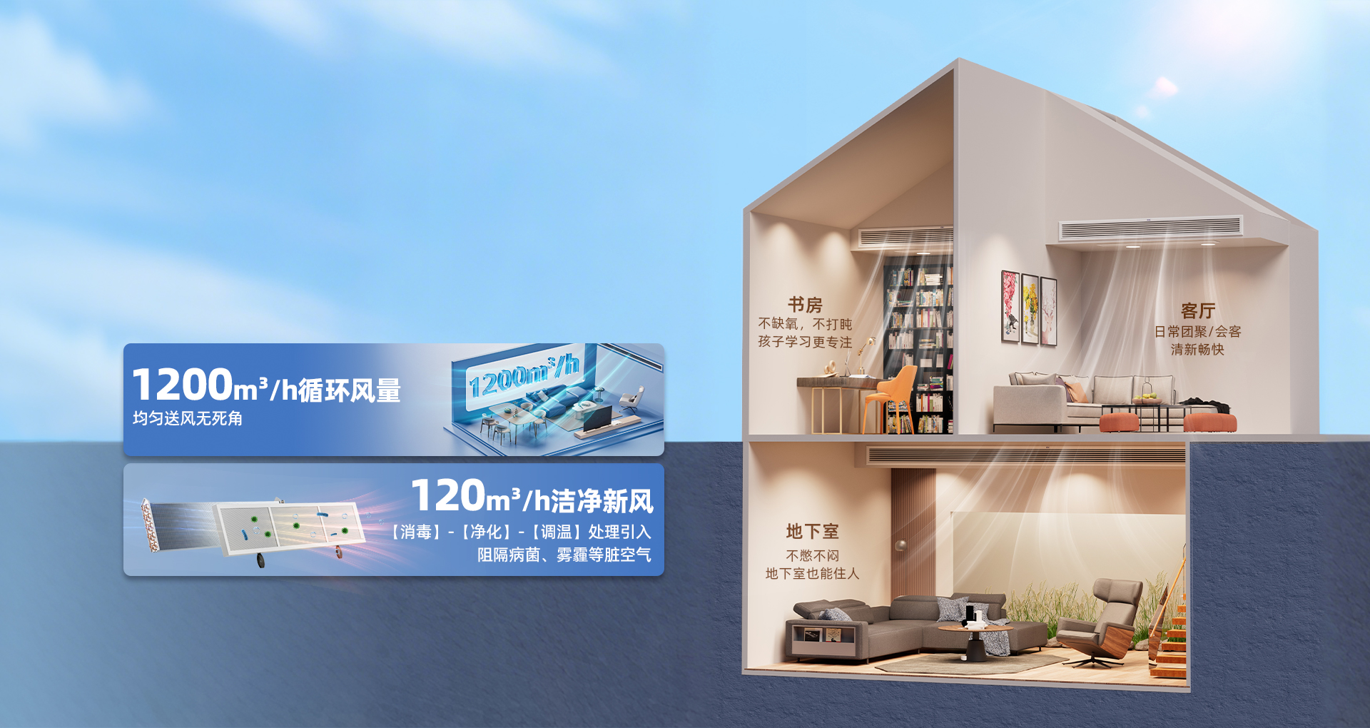 六合一空气管理专家,集成空调、新风、净化、消毒、除湿、监测功能,创新0.1℃精密温控与0耗材水洗净化技术,医护级消毒灭活率>99%。120m³/h新风排醛,35dB超静音运行,智能恒湿节能省电,全方位解决家庭空气健康问题。